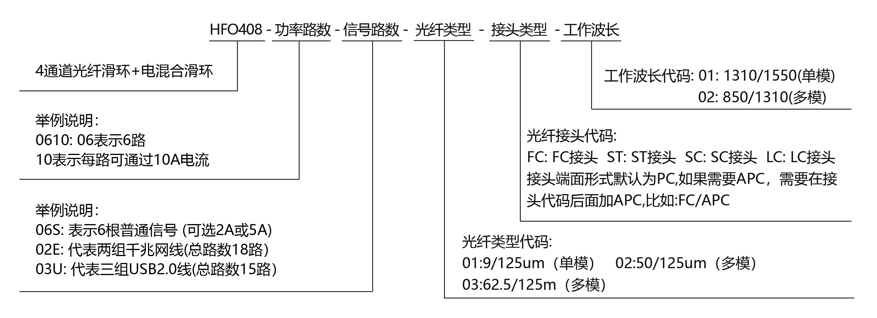 | HFO408 - 4路光+電滑環(huán)選型表 | |||||||||